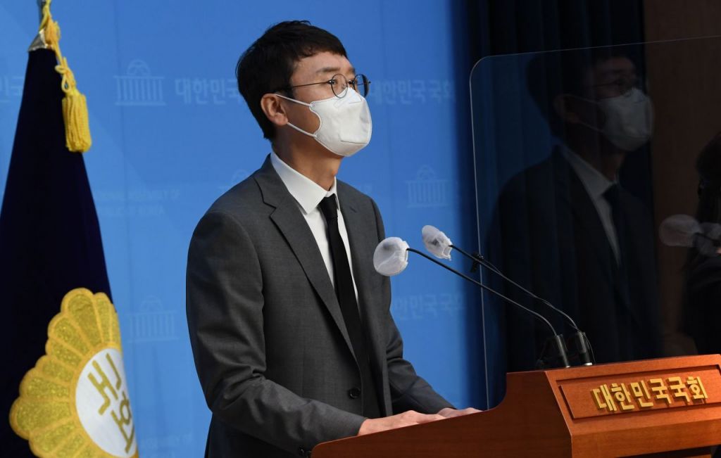 김웅 국민의힘 의원이 8일 서울 여의도 국회 소통관에서 지난해 총선 당시 윤석열 검찰총장의 측근 검사로부터 여권 인사에 대한 고발장을 넘겨받았다는 이른바 '고발사주' 의혹과 관련해 기자회견을 하고 있다. [이미지출처=연합뉴스]