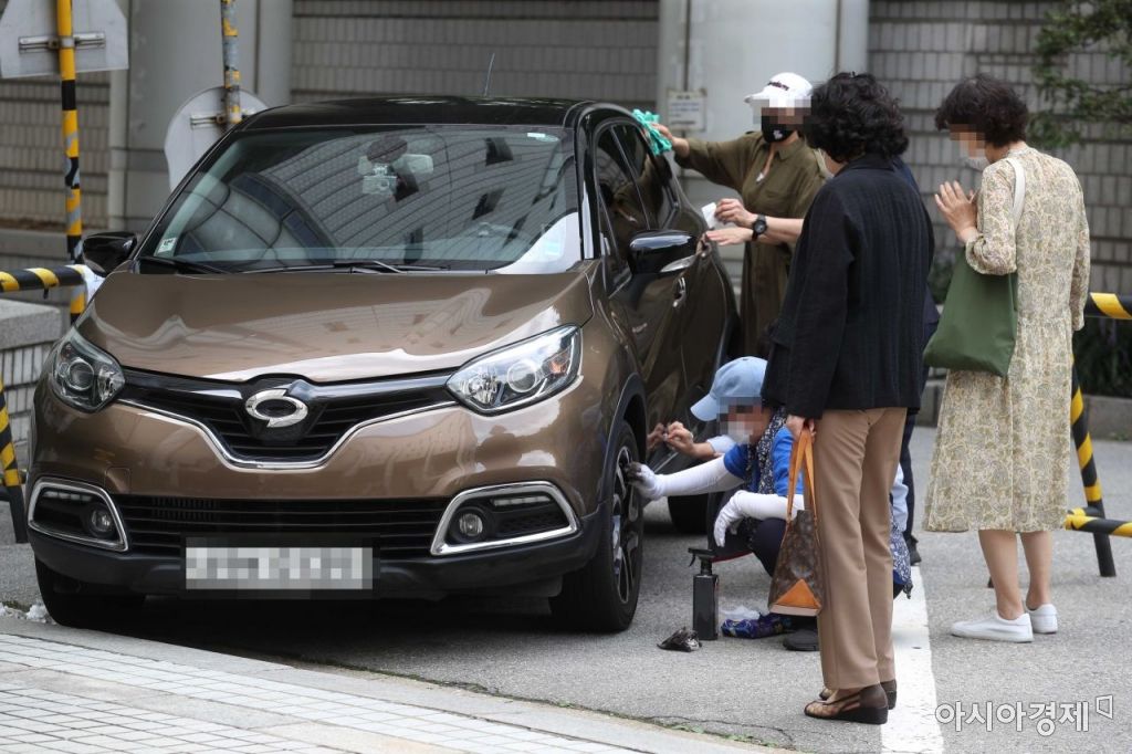 앞서 조 전 장관이 처음 서울중앙지법 재판정에 섰던 지난 5월8일에도 조 전 장관 지지자들은 그가 타고 온 차량을 물티슈로 닦았다. 당시 이 장면을 촬영한 동영상이 사회관계망서비스(SNS)와 유튜브 등을 통해 확산하기도 했다.