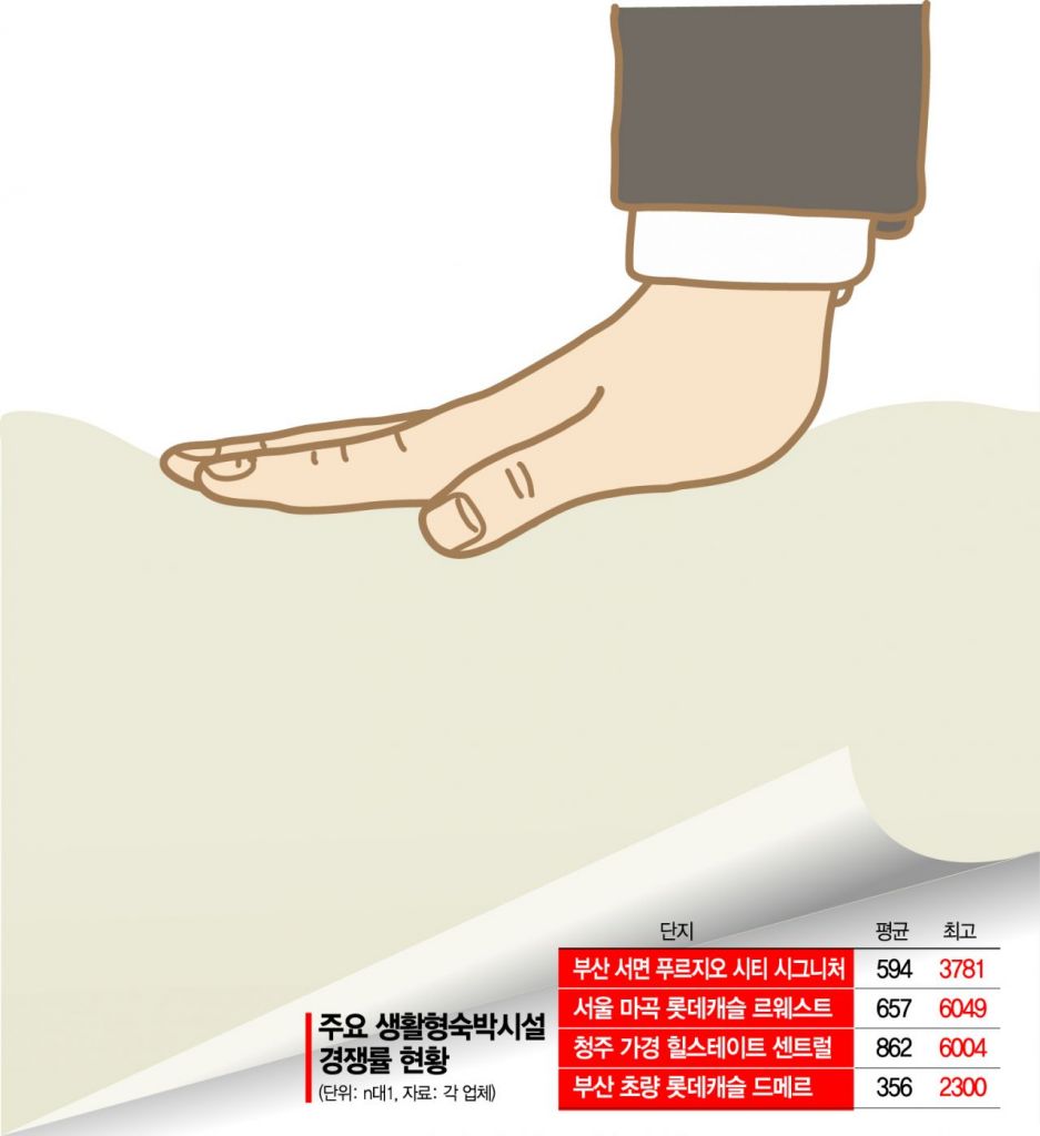 13일 업계에 따르면 최근 전국에서 분양되는 생숙은 잇따라 세 자릿수 평균 경쟁률을 기록하고 있다. 지난달 분양한 서울 강서구 마곡지구의 생숙 ‘롯데캐슬 르웨스트’는 876실에 57만5950건의 청약이 몰리며 평균 657대 1의 경쟁률을 기록했다. 일부 타입은 경쟁률이 6000대 1까지 치솟았다. 84㎡(전용면적)의 분양가가 최고 16억1000만원으로 주변 아파트 시세에 맞먹는 것을 고려하면 이상 현상이다.