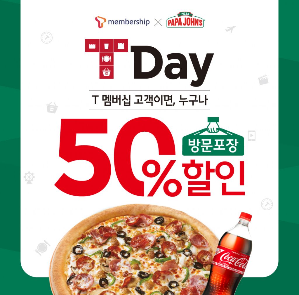 할인을 원하는 고객은 T멤버십 앱을 통해 매직 바코드를 활성화한 뒤 파파존스 피자 온라인 채널(홈페이지, 모바일 웹, 모바일 앱)에서 바코드 번호 입력 후 방문 포장하면 50% 할인된 금액으로 메뉴를 구매할 수 있다.