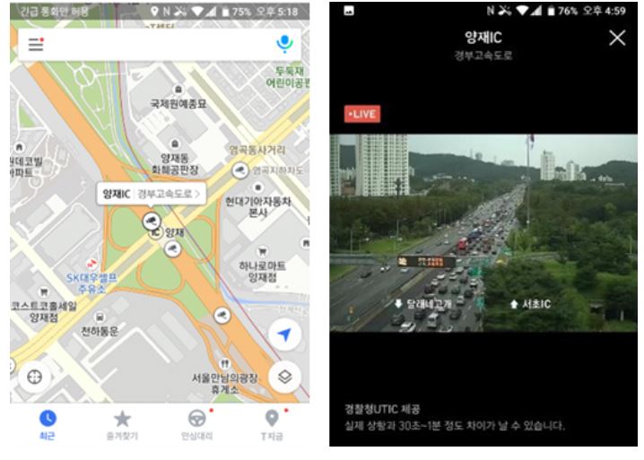 CCTV는 울릉도와 독도를 포함해 전국 7200여곳 화면을 볼 수 있도록 했다. 이는 포털 등 다른 사업자 대비 가장 많다. 안드로이드 스마트폰 사용자는 티맵 애플리케이션(앱) 지도 위 표시된 CCTV 아이콘을 누르면 사용할 수 있다. 아이콘은 설치 위치가 아닌 촬영 대상 위치에 표시해 사용자 입장에서 화면을 이해하기 쉽게 배려했다.