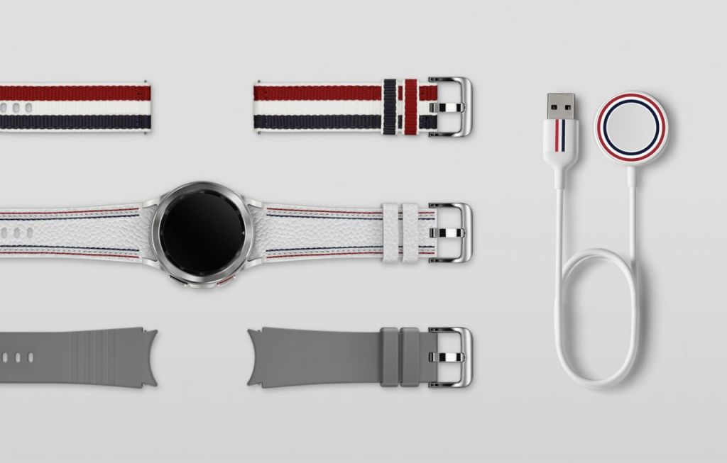 톰브라운 에디션은 실버 색상의 42mm '갤럭시 워치4 클래식' 블루투스 모델로 출시되며 ▲톰브라운의 정교한 박음질 디테일이 적용된 화이트 가죽 스트랩 ▲톰브라운 시그니처 색상이 적용된 패브릭 소재 스트랩 ▲불소고무(FKM) 소재의 그레이 색상 스트랩 등 사용자의 스타일에 따라 교체 가능한 3가지 스트랩과 워치 충전기가 함께 제공된다.