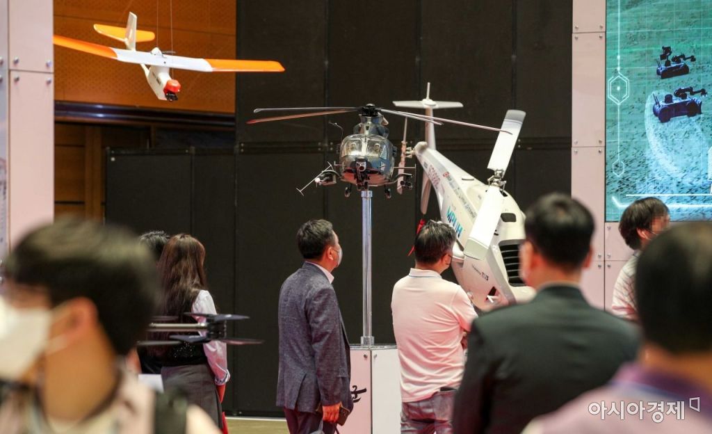 26일 서울 강남구 코엑스에서 열린 '2021 무인이동체산업엑스포'에서 다양한 드론 및 무인이동체가 전시되고 있다./강진형 기자aymsdream@