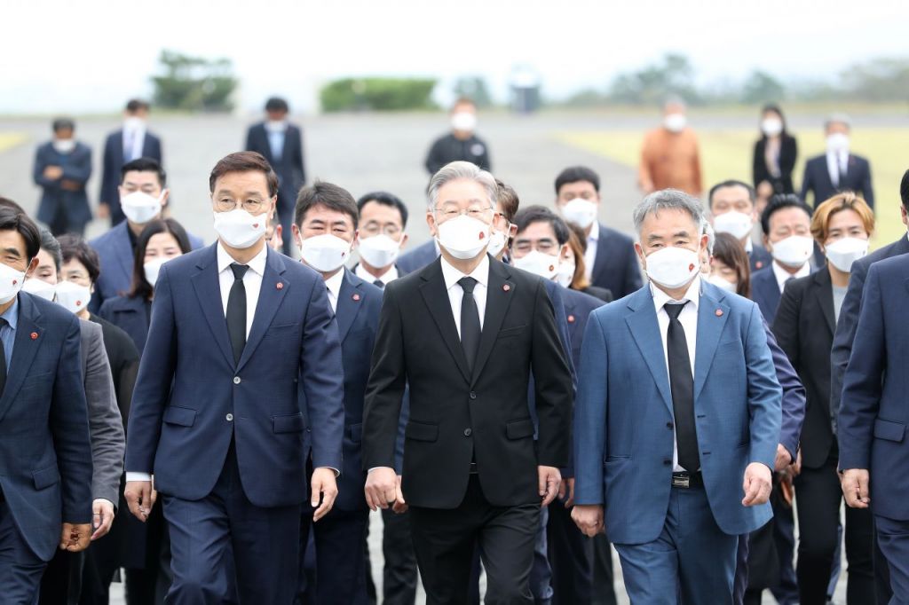 더불어민주당 대선 경선 예비후보인 이재명 경기지사가 지난 27일 오전 제주시 봉개동 4·3평화공원을 찾아 위령제단으로 향하고 있다. [이미지출처=연합뉴스]
