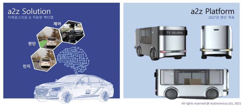 [아시아경제 김보경 기자] 현대자동차 출신의 4명이 의기투합해 세운 자율주행 스타트업 오토노머스에이투지(a2z)가 2027년 자율주행차 양산에 나선다. 내년부터 본격적인 개발에 착수해 공장 설립까지 약 2000억원이 투입되는 대형 프로젝트다. 이를 통해 자율주행 분야의 소프트웨어부터 하드웨어까지 아우르는 글로벌 대기업이 된다는 게 최종 목표다.