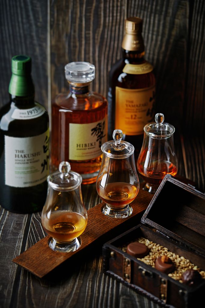 리빙룸 바는 과일의 풍미와 깊은 몰트 향을 느낄 수 있는 '야마자키 12년산', 시트러스 향과 은은한 단맛이 특징인 '하쿠슈', 바닐라 향과 같은 부드러운 풍미가 특징인 '히비키'를 이용한 하이볼 3종을 모두 맛볼 수 있도록 샘플러를 제공한다. 보물 상자를 연상시키는 상자에 담은 다양한 초콜릿도 함께 맛볼 수 있다.