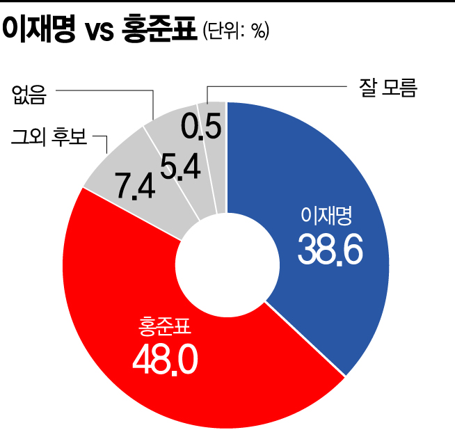 특히 눈여겨 볼 것은 지난번 이 후보와의 가상 양자대결에서 국민의힘 지지층의 78%만이 홍 의원 지지를 밝힌 데 반해, 이번 조사에서는 85%가 지지하는 것으로 나타났다. 국민의힘 대선 본경선에서 50%의 영향력을 발휘하는 당심 등에서도 홍 후보가 윤 전 총장 수준(88.1%)의 경쟁력을 얻은 것이다.