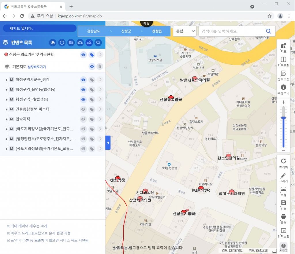 특히 의료기관 및 약국 현황을 지도화해 대민 서비스 시 효율적인 안내가 가능하다. 또 공익형 직불제사업 토양검사 대상 등도 지도화해 담당자들이 출장시 동선파악 등 효율적인 출장을 지원하는 등 다양한 분야에서 활용된다.