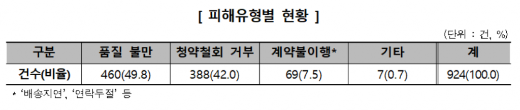구매 철회 거부 사례 가운데는 소비자가 제품을 받은 즉시 하자를 발견해 환불을 요구했으나 거부당한 경우가 25%로 가장 많았다.