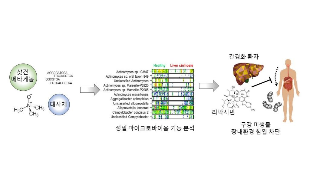 연구팀은 정밀 마이크로바이옴 분석 연구를 통해서 간경변증의 경우, 구강 미생물이 장내 환경으로 침투함으로써 환자에게 전신 염증을 일으킨다는 것과 특히 리팍시민 약물이 구강 미생물의 장내 침입을 막아내는데 효과적으로 작용하는 기전을 규명했다. 기존 연구에서 시도되지 않았던 샷건 메타게놈, 대사체 등의 멀티오믹스 분석과 구강 마이크로바이옴 전장 유전체 레퍼런스 구성을 통해, 장-구강 축(gut-oral axis)을 체계적으로 분석했다. 베일로넬라(Veillonella), 연쇄상구균(Streptococcus) 등의 구강 미생물의 장내 침입을 차단하는 것이 간경변증에 따른 간성뇌증을 막는데 주요 역할을 한다는 것도 밝혀냈다.