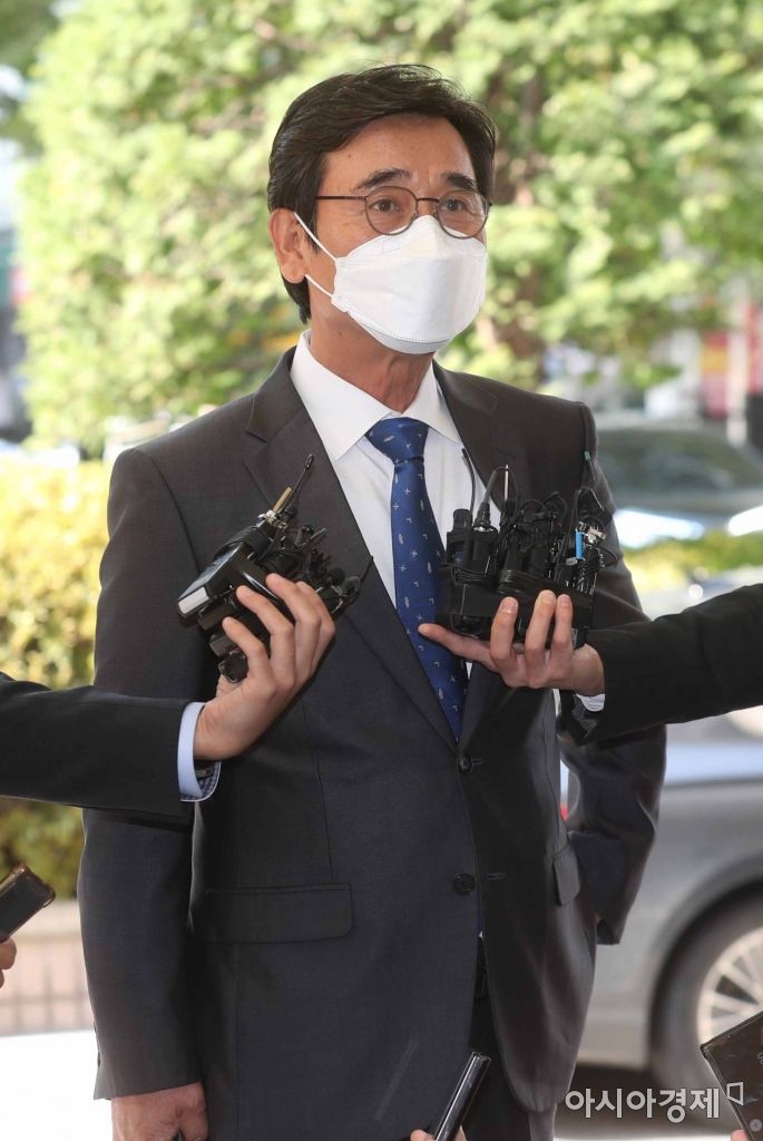 한동훈 검사장의 명예를 훼손한 혐의로 기소된 유시민 전 노무현재단 이사장이 21일 서울 마포구 서부지방법원에서 열린 첫 공판에 출석하며 취재진 질문에 답변하고 있다. /문호남 기자 munonam@