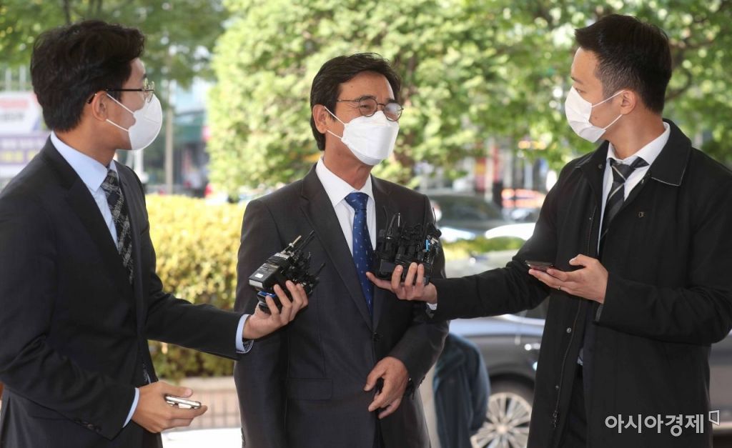 한동훈 검사장의 명예를 훼손한 혐의로 기소된 유시민 전 노무현재단 이사장이 21일 서울 마포구 서부지방법원에서 열린 첫 공판에 출석하며 취재진 질문에 답변하고 있다. /문호남 기자 munonam@