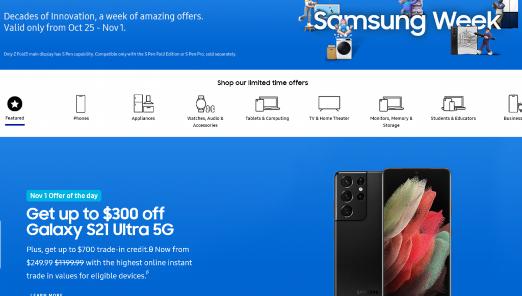 삼성은 미국 '삼성위크'기간 동안 프레임 TV, 갤럭시북 프로, 건조기, 갤럭시 노트20 울트라 5G, 네오 QLED 8K TV, 갤럭시 Z3플립 5G, 갤럭시 S21 울트라 5G를 특별 할인해 판매한다.