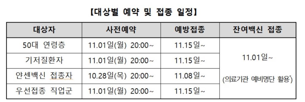 코로나19 1차 대응요원과 의원급 의료기관·약국 종사자, 돌봄 종사자, 특수교육·보육, 보건교사 및 어린이집 간호인력, 경찰·소방·군인 등 사회필수인력은 업무 특성상 감염·전파 위험이 높아 상반기에 우선접종을 실시한 대상으로, 접종완료 후 6개월 경과자는 내달 1일부터 사전예약을 통해 내달 15일부터 접종 받을 수 있다.