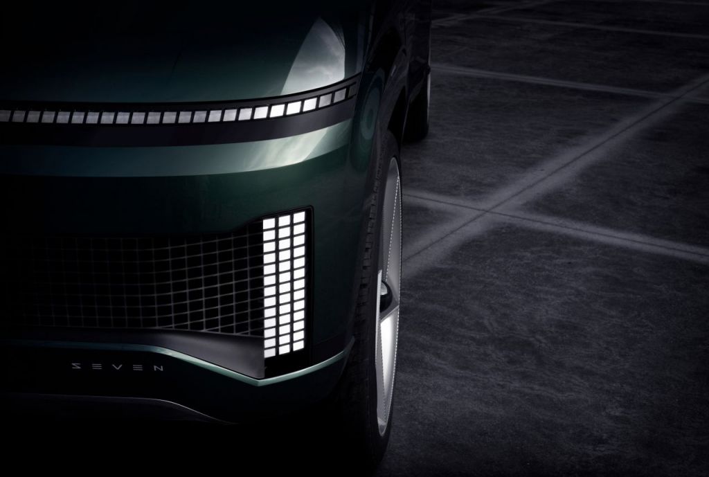 기존 내연기관 차량과는 다른 새로운 SUV 전기차 형태를 띄고 있는 세븐은 아이오닉의 브랜드 정체성을 상징하는 파라메트릭 픽셀 디자인을 헤드램프에 적용해 존재감을 드러낸다.
