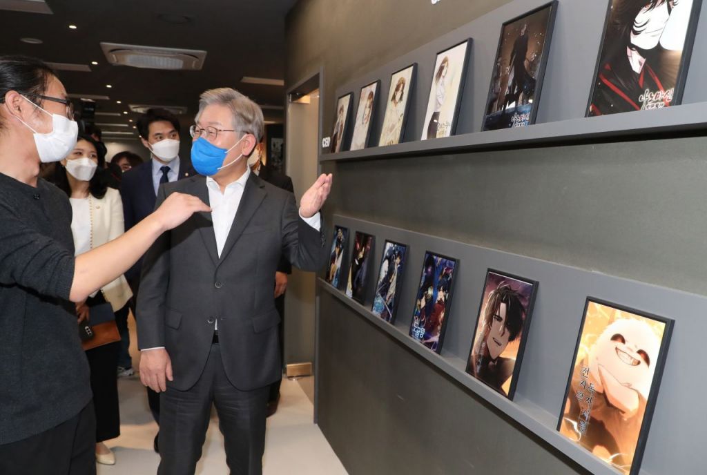 앞서 이 후보는 '만화의 날'인 3일 경기 부천시 부천테크노밸리의 한 웹툰 제작업체를 찾아 작품을 구경하던 중 '오피스 누나 이야기'라는 제목의 작품 액자 옆에서 "오피스 누나? 제목이 확 끄는데요?"라고 말했다. 이 후보의 발언을 바로 옆에서 듣고 있던 업체 관계자는 "성인물은 아닙니다"라고 답했다.