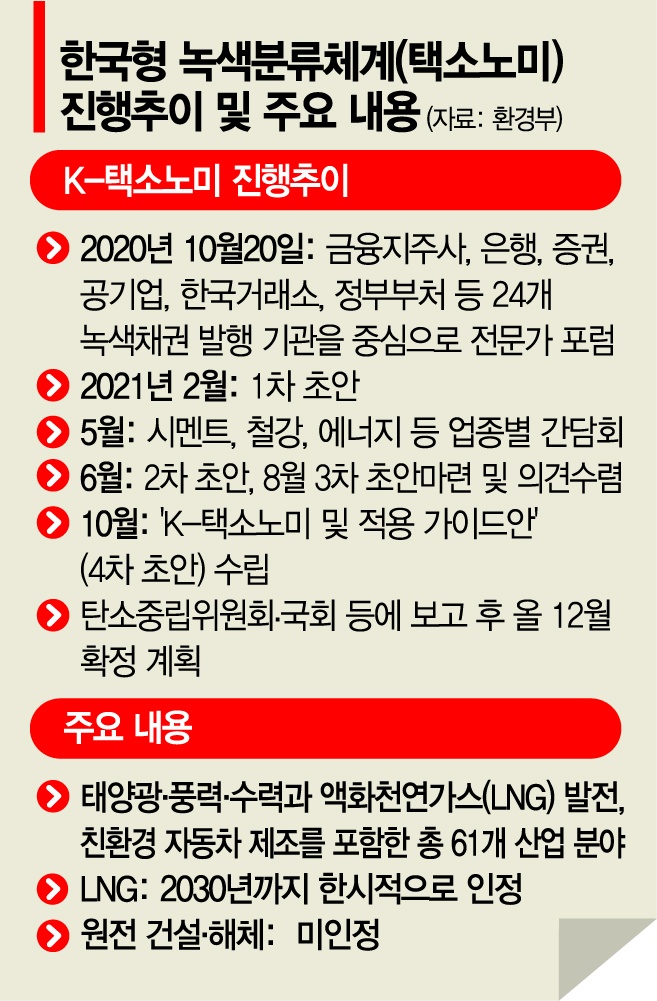 환경부는 마지막 초안인 4차안을 토대로 탄소중립위원회와 관계 부처 등의 의견을 추가로 수렴한 뒤 올 12월 K-택소노미 최종안을 확정 발표할 예정이다.