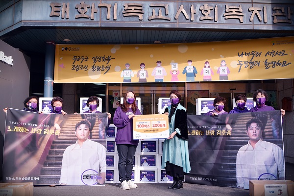 가수 김호중 공식 팬카페 ‘아리스’가 사회복지법인 감리회 태화복지재단(대표이사 이철)에 지역사회 소외계층을 돕기 위한 후원물품을 지난 11월 11일 전달했다.