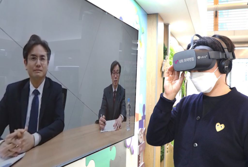 대면 면접교육의 경우 교육 담당자 1명이 하루 4~6명을 가르칠 수 있는 반면, ‘U+VR모의면접’을 활용하면 VR기기 한 대만으로 하루에 20명 이상의 교육생이 면접 교육을 받을 수 있다.