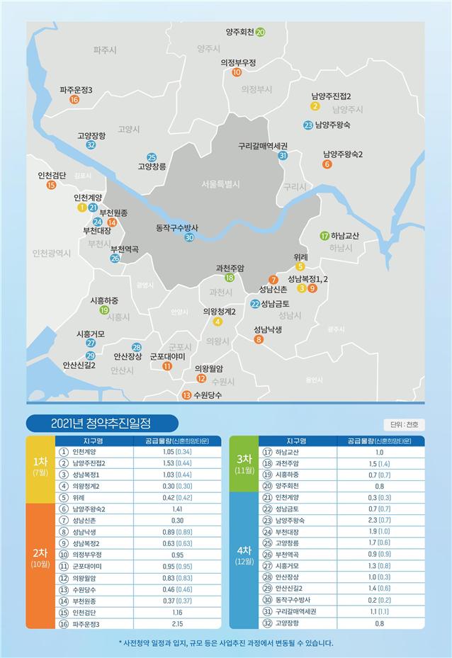시흥하중·양주회천 지구에서는 사전청약으로 1576가구가 공급된다. 시흥하중은 인근에 시흥시청역·신현역, 제3경인고속화도로 연성IC 등이 위치해 시흥뿐 아니라 서울·인천 방면으로의 접근성이 뛰어나 수도권 서부지역에 거주 중인 신혼부부의 관심이 예상된다. 양주회천은 서울 북쪽으로부터 13㎞ 지점에 위치하고, 의정부시와 동두천시를 연결하는 경기 동북부 거점도시로 조성된다.