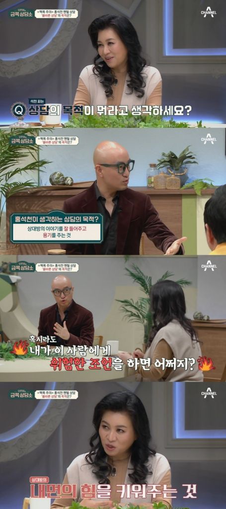 오은영은 홍석천의 심리 상태가 심각하다고 염려하면서도 전문가가 아닌 홍석천이 상담을 하는 것에 대해 적절치 못하다고 조언했다. 오은영이 "홍석천 씨가 상담해주는 게 도움이 된다고 생각하냐"라고 묻자, 홍석천은 "도움이 안 될 수도 있겠다. 나는 전문가가 아니니까 잘못된 상담을 하면 오히려 역효과가 날 수도 있을 것 같다. 가끔 '내가 왜 이 조언을 이 사람에게 하지?' 싶을 때가 있다. 정확한 상황을 잘 모르니까, '나라면 ~할 것 같다'라고 한다. 세심한데 소심하다"라고 답했다.