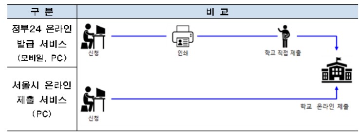 올해부터 정부24에서도 취학통지서 온라인 ‘발급’ 서비스를 전국단위로 시작해 서울시 온라인 민원 제출 서비스 오픈기간과 동일한 3일부터 12일까지 운영한다.