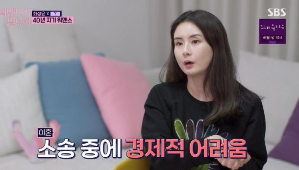 배우 최정윤이 이혼 진행 중 경제적 어려움을 겪고 있는 근황을 전했다. /사진= SBS '워맨스가 필요해' 방송화면 캡쳐