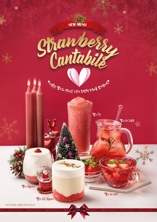[아시아경제 김보경 기자] 프랜차이즈 카페 브랜드 '커피에반하다'가 크리스마스 시즌을 맞아 딸기를 테마로 한 신메뉴 '스트로베리 칸타빌레 시리즈'를 선보인다.
