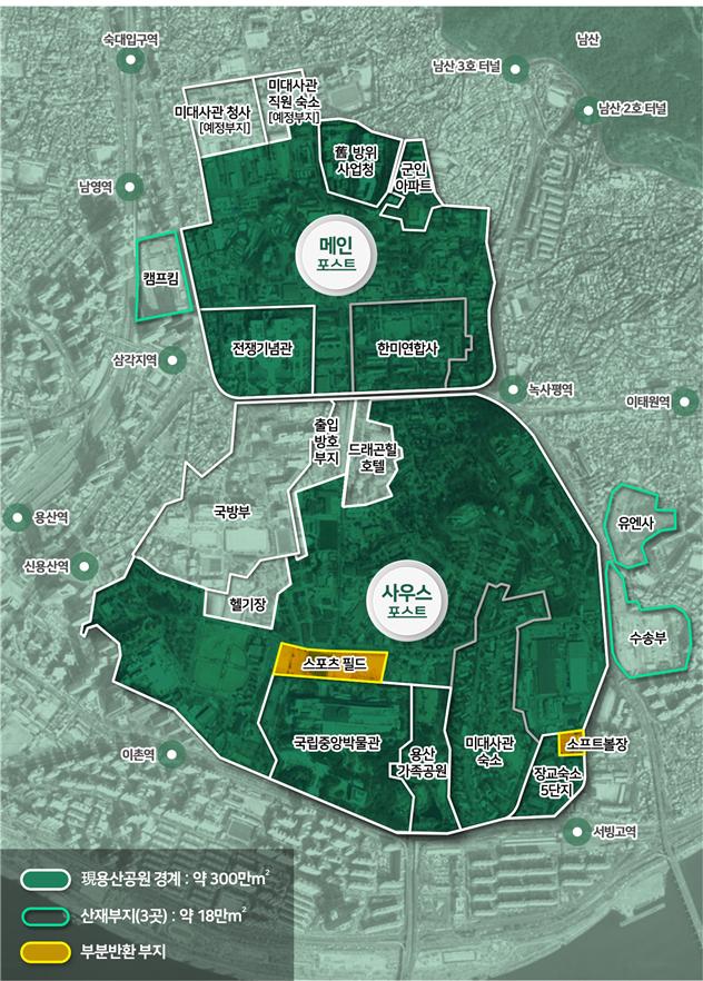 국토교통부는 서울 용산구 국립중앙박물관 북측 약 4만5000㎡와 미군기지 동남쪽 장교숙소 5단지 북측 약 8000㎡를 국민에게 개방하기 위해 부지 조성공사에 착수한다고 8일 밝혔다.