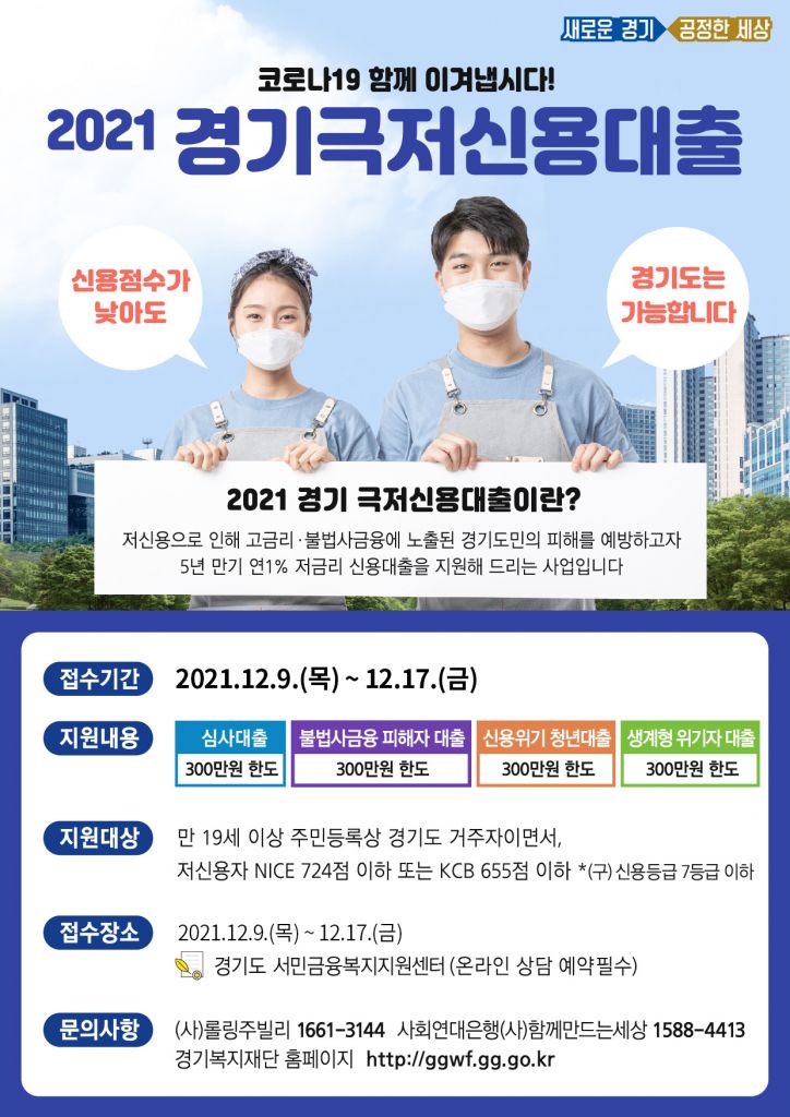 대출 희망자는 오는 17일까지 경기도 서민금융복지센터 사전 예약을 통해 재무 상담 후 접수하면 된다. 사전 예약, 대출 신청 방법 등 자세한 사항은 '경기 극저신용대출' 전용 콜센터나 경기복지재단 누리집을 확인하면 된다.