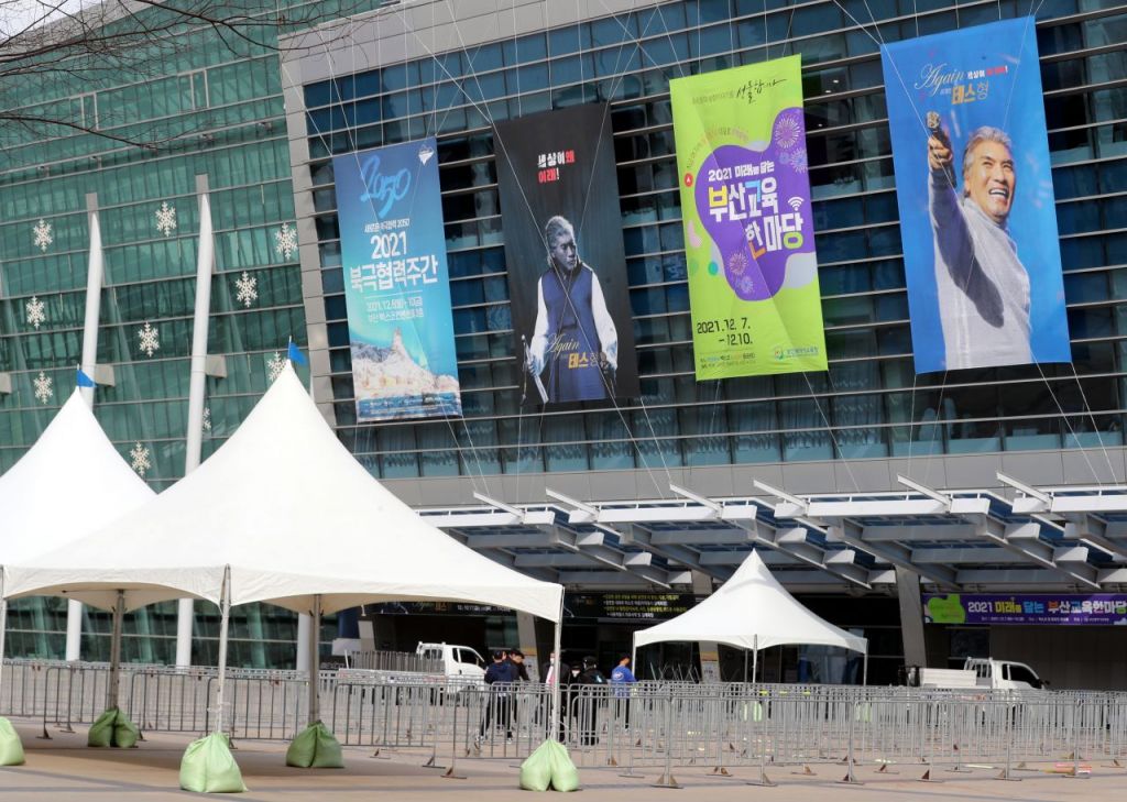 9일 오후 부산 해운대구 벡스코에 '나훈아 콘서트' 안내 배너 등이 걸려 있다. [이미지출처=연합뉴스]