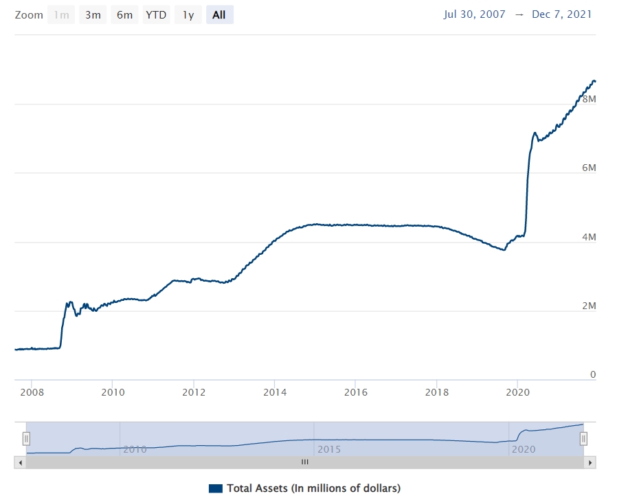 미국 연방준비제도(Fed) 보유 자산 추이 [이미지 출처= Fed]