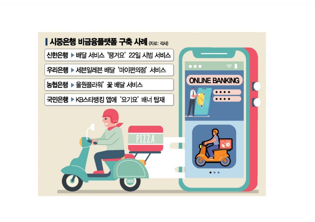 [아시아경제 김진호 기자] 은행들이 배달 애플리케이션(앱) 등을 시작으로 생활서비스 시장에 속속 뛰어들고 있다. 그간 빅테크(대형 정보기술기업)와의 경쟁에서 수세에 몰렸던 은행들이 이들의 주 무대인 플랫폼에서 치열한 싸움을 예고하고 나선 것. 업계에선 은행이 종합 플랫폼 구축을 위한 첫걸음을 뗐다는 평가가 나오지만, 일각에선 소비자를 크게 유인할 만한 요인이 없다는 지적도 나온다.
