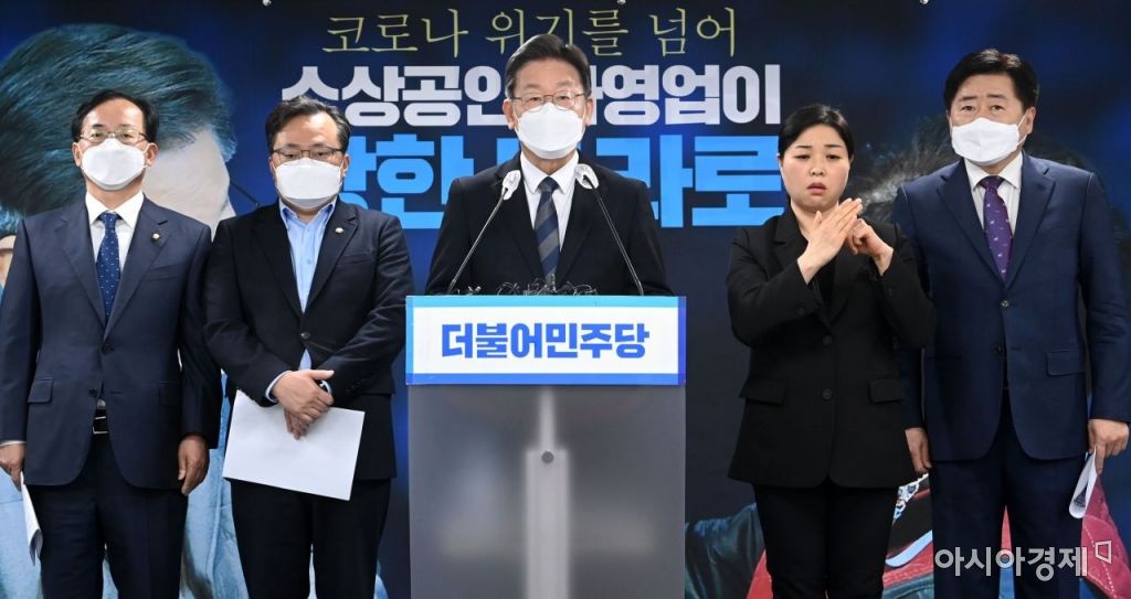 이날 이 후보는 서울 여의도 민주당사에서 기자회견을 열고 이같은 내용이 담긴 '소상공인·자영업자를 위한 7대 공약'을 발표했다. 이 후보는 ▲한국형 급여보호프로그램(PPP) 도입·지역화폐 대폭 확대로 신속한 매출 회복 지원 ▲폐업 재기 지원 ▲임대료 부담 완화 ▲플랫폼 시대 '을'의 권리 보장 ▲중소벤처기업부 내 소상공인·자영업 전담차관 신설 ▲현장 밀착형 지원 ▲영세소공인 종합지원 등이다.
