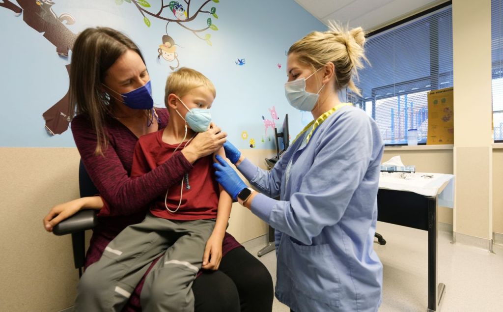 지난달 3일(현지시각) 미국 콜로라도주 덴버의 한 병원에서 6살 어린이가 화이자 백신을 접종받고 있다. [이미지출처=연합뉴스]