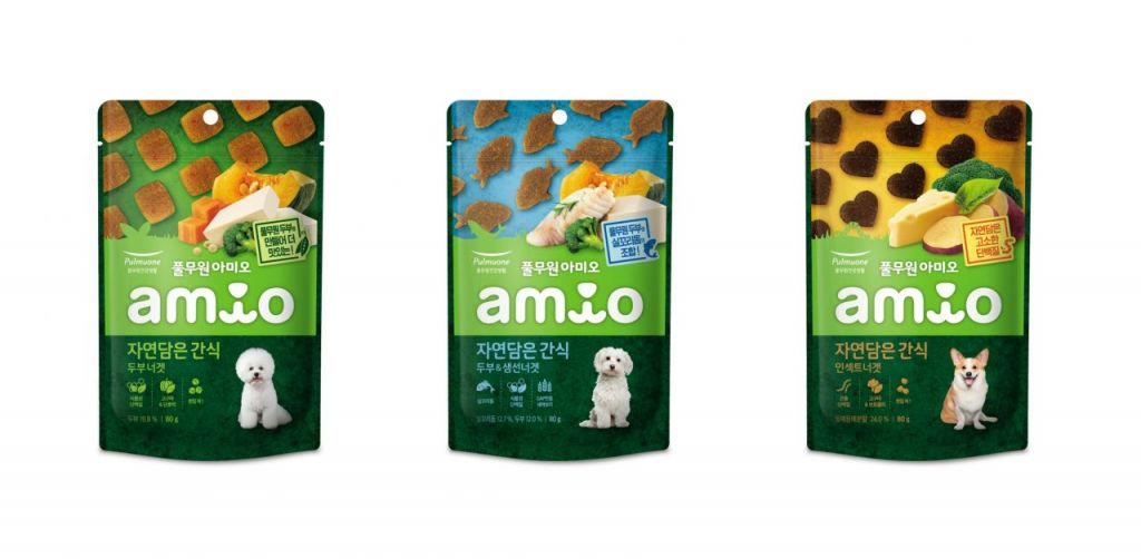 회사에 따르면 반려견의 식이 알러지를 유발하는 물질은 소고기 32.4%, 유제품 17.9%, 닭고기 15.2% 순으로 알려져 있다. ‘아미오 자연담은 간식’은 소, 돼지 등 익숙한 동물성 단백질을 대체할 수 있는 새로운 단백질원에 대한 반려인구의 요구와 환경을 생각하는 MZ세대의 가치소비 트렌드를 모두 반영하기 위해 대체 단백질원으로 두부와 곤충을 사용했다.