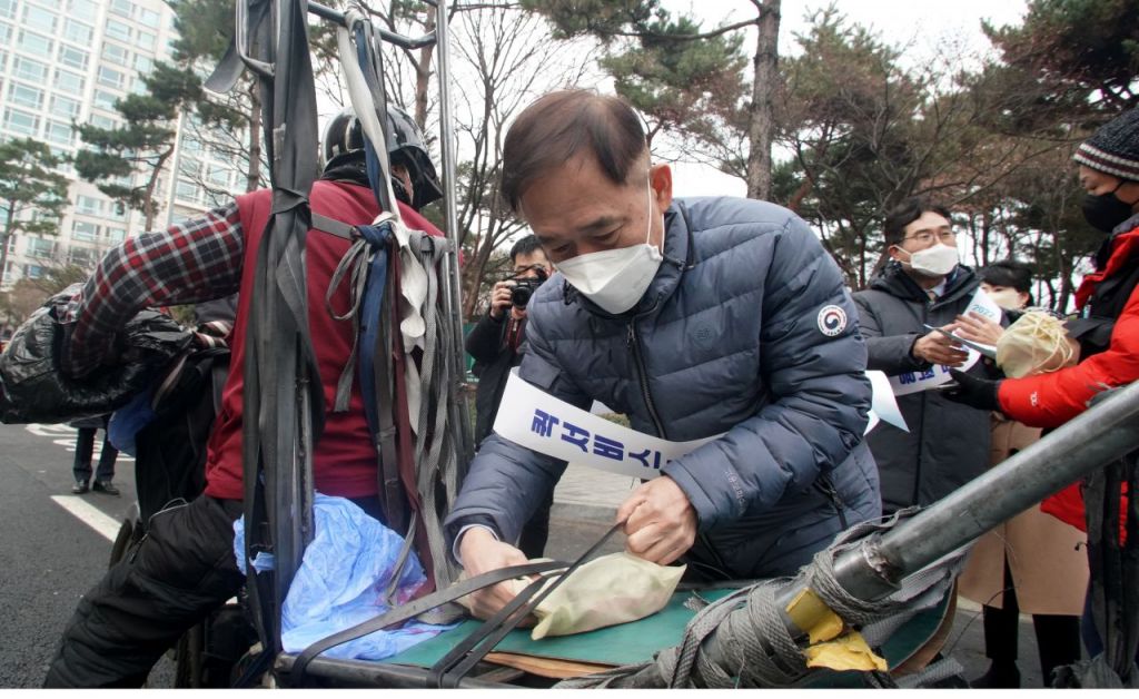 이날 오후 박화진 고용부 차관은 서울 을지로에 있는 배달 라이더 쉼터를 찾아 고용보험 적용 사실을 안내하고 핫팩 등 방한용품을 전달하기도 했다.