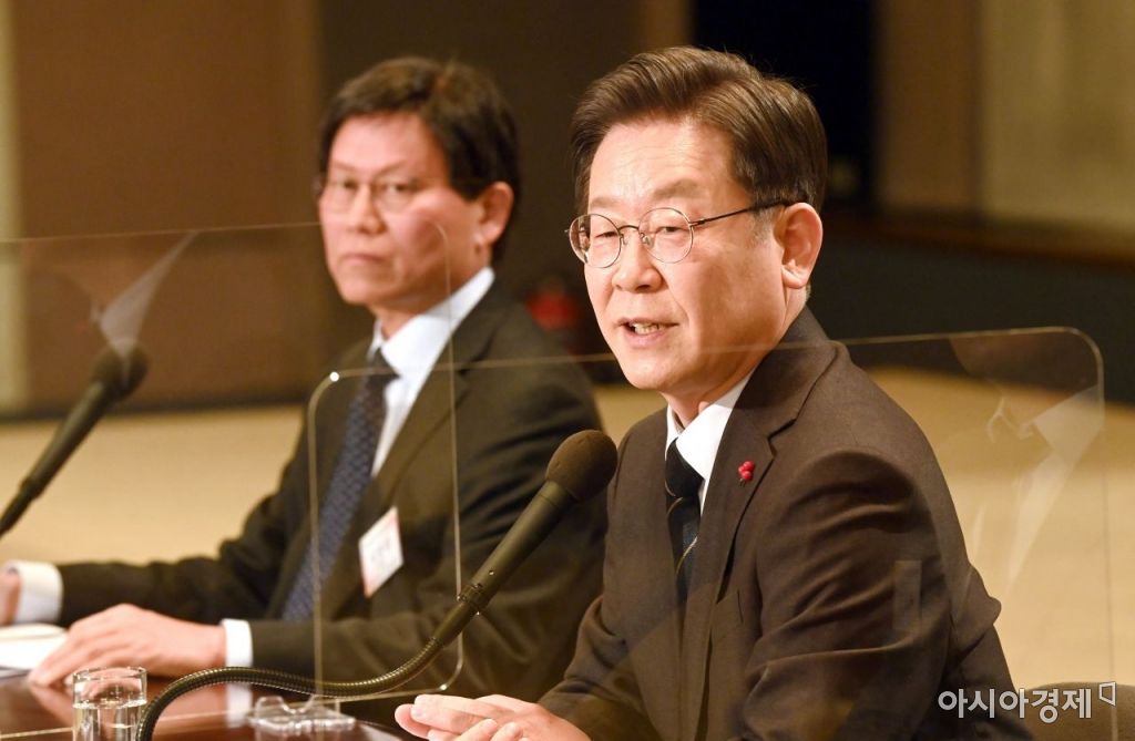 이재명 더불어민주당 대선후보가 30일 서울 중구 프레스센터에서 열린 한국신문방송편집인협회 주최 토론회에 참석, 발언을 하고 있다./국회사진기자단