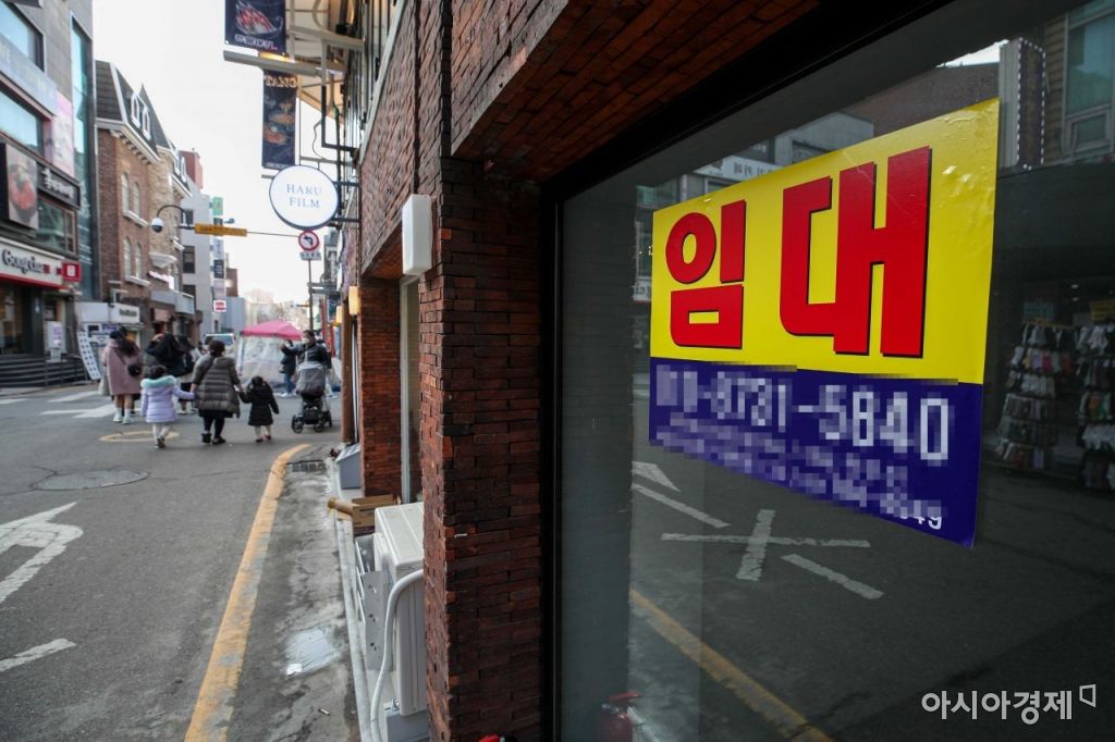 코로나19 확진자 급증으로 한층 강화된 사회적 거리두기가 이어지고 있는 지난해 12월 21일 서울 종로구 대학로에 자리한 상점에 임대 안내문이 붙어 있다./강진형 기자aymsdream@