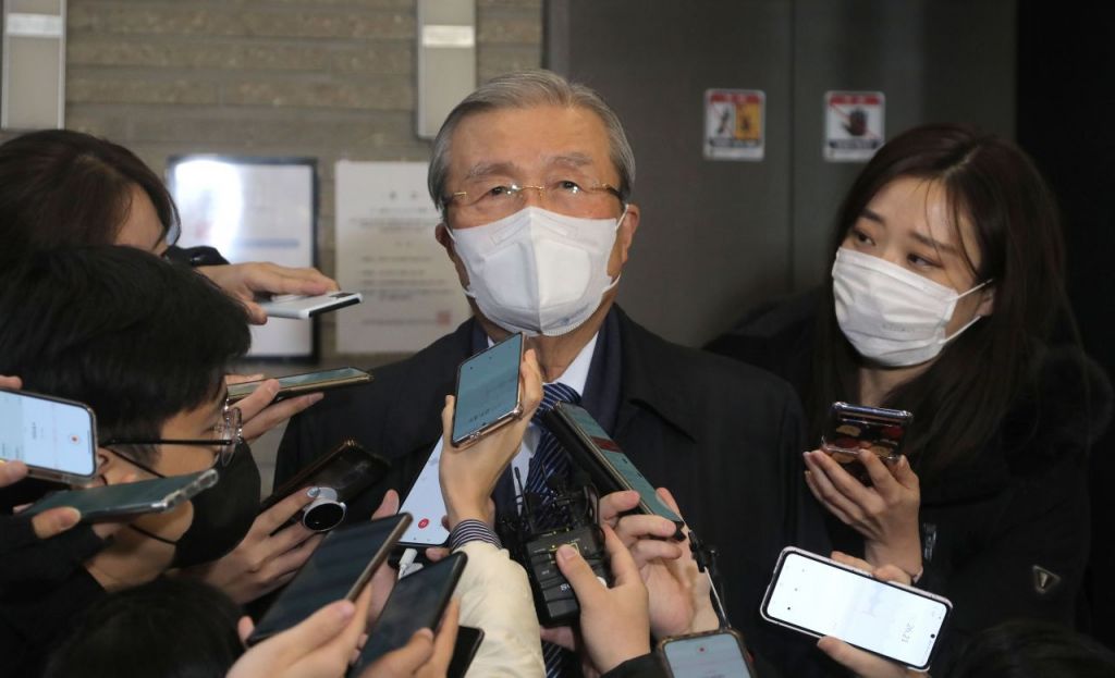 김종인 국민의힘 총괄선대위원장이 3일 오후 서울 여의도 당사를 나서며 취재진 질문에 답하고 있다. [이미지출처=연합뉴스]