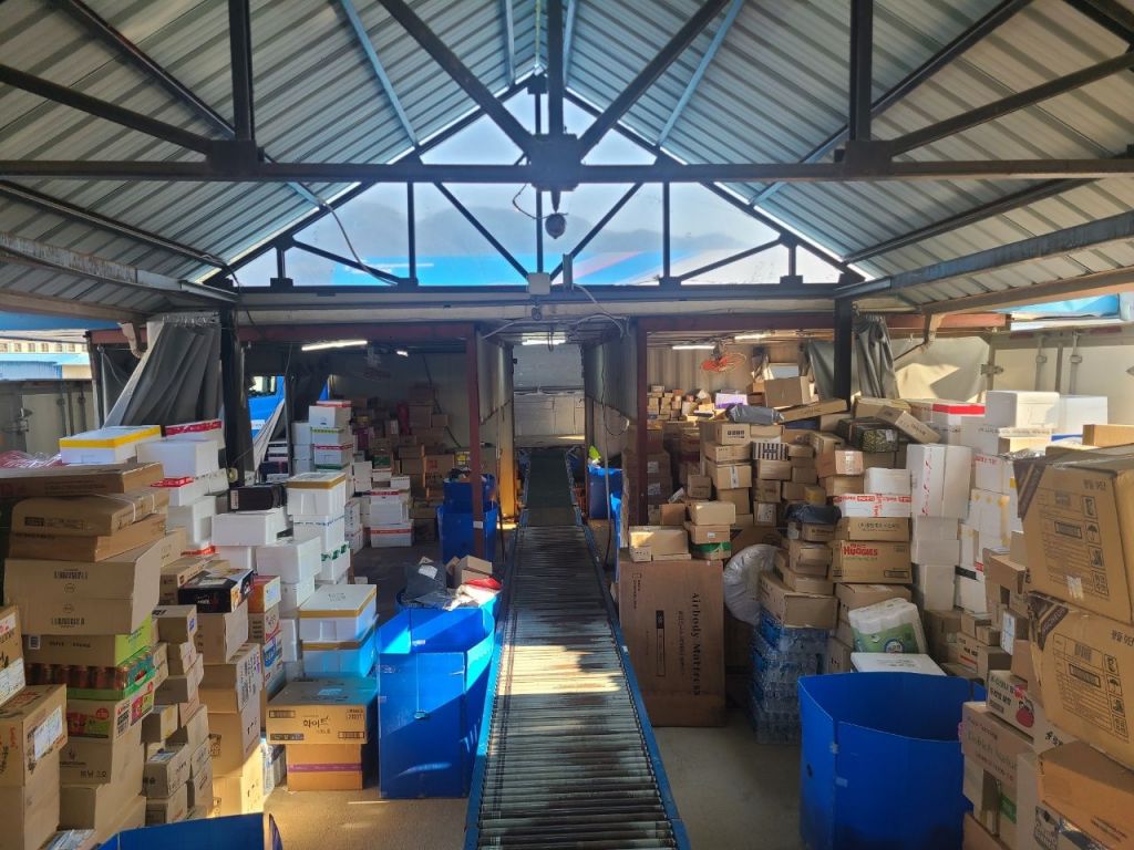 택배노조 파업으로 CJ대한통운 양구 서브터미널에 물류가 적체돼 있다. [사진제공 = 소상공인연합회]