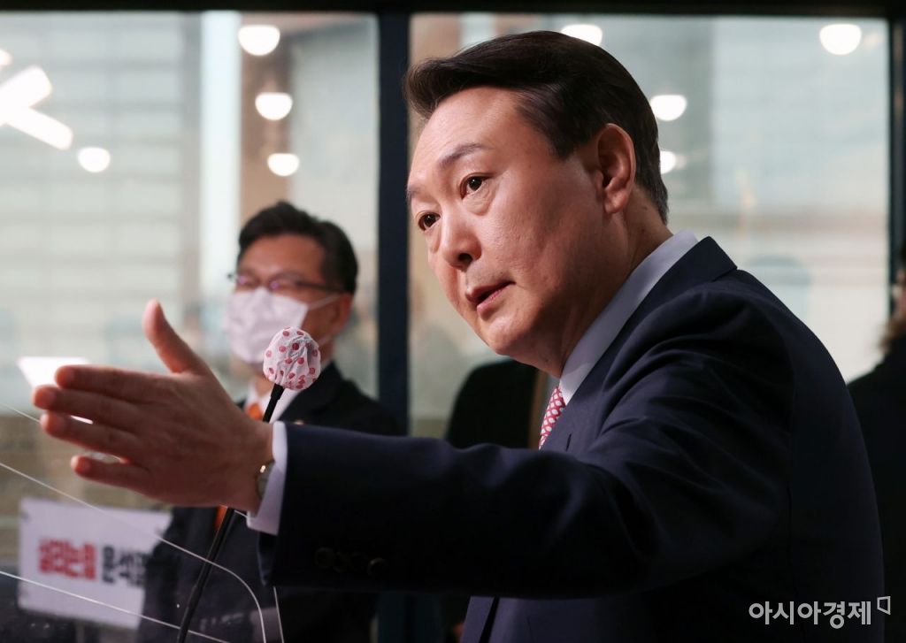 윤석열 국민의힘 대선 후보가 5일 서울 여의도 중앙당사에서 선대위 관련 기자회견을 하고 있다./윤동주 기자 doso7@