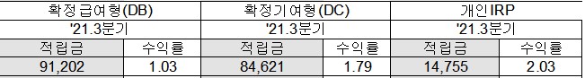 IBK기업은행 퇴직연금 적립금 및 수익률(금융감독원)<br /> (단위: 억원, %)