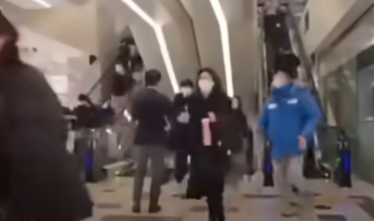 에스컬레이터를 거꾸로 타고 내려오다가 넘어지는 이들이 나오기도 했다. / 사진=유튜브 영상 캡처