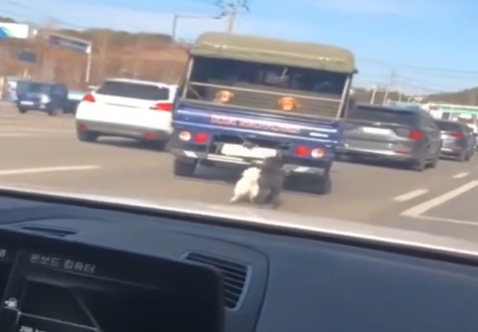 사건을 목격한 한 운전자가 찍은 영상이 이날 한 온라인 커뮤니티에 공개되기도 했다. 영상 속에는 트럭이 차선 변경을 위해 속도를 높이자 뒤에 매달린 강아지 2마리가 제대로 따라가지 못하고 넘어지거나 끌려가는 모습 등이 담겼다.