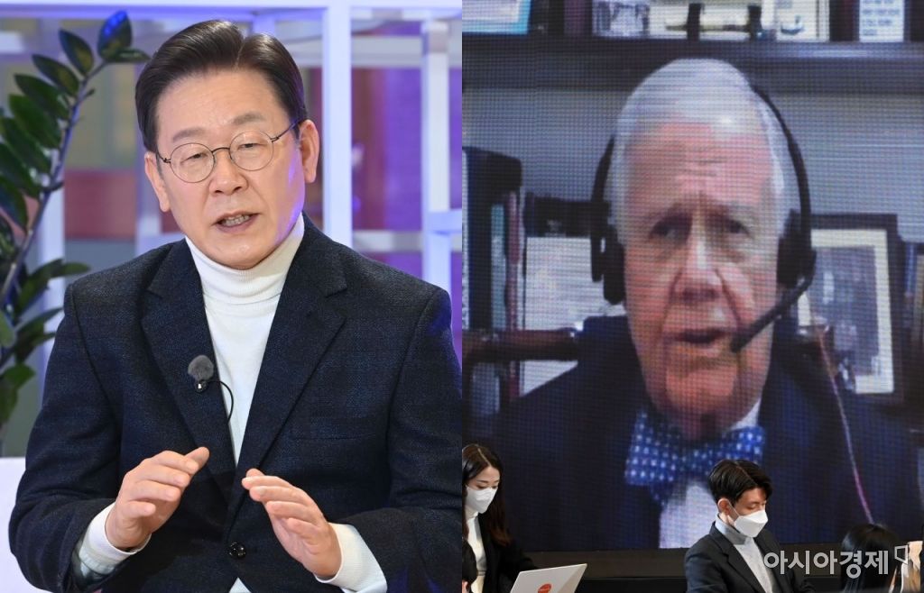 이날 두 사람은 '포스트 코로나' 시대에 대해서도 의견을 교환했다. 이 후보는 "미국 바이든 정부에서 대대적 인프라 투자를 하고 있다"면서 "이게 대한민국에서도 필요한 부분이라고 보고 인프라, 과학기술, 교육에 대한 투자를 통해 새로운 변화를 준비해야 한다고 생각한다"고 말했다.