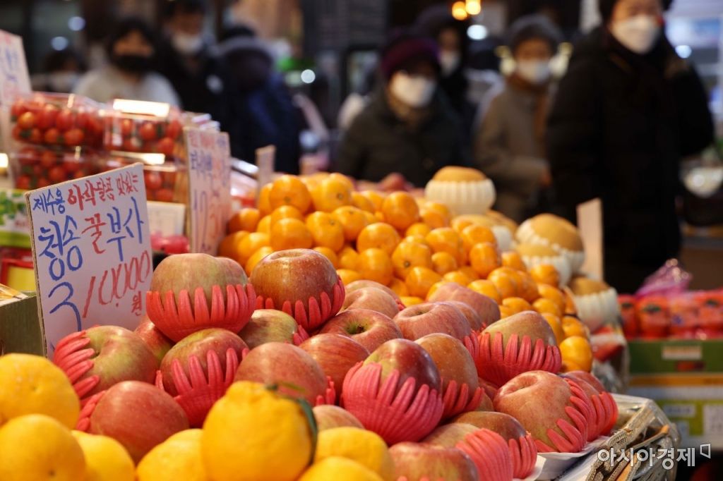 설 명절을 일주일 앞둔 23일 서울 마포구 망원시장에서 시민들이 장을 보고 있다. /문호남 기자 munonam@