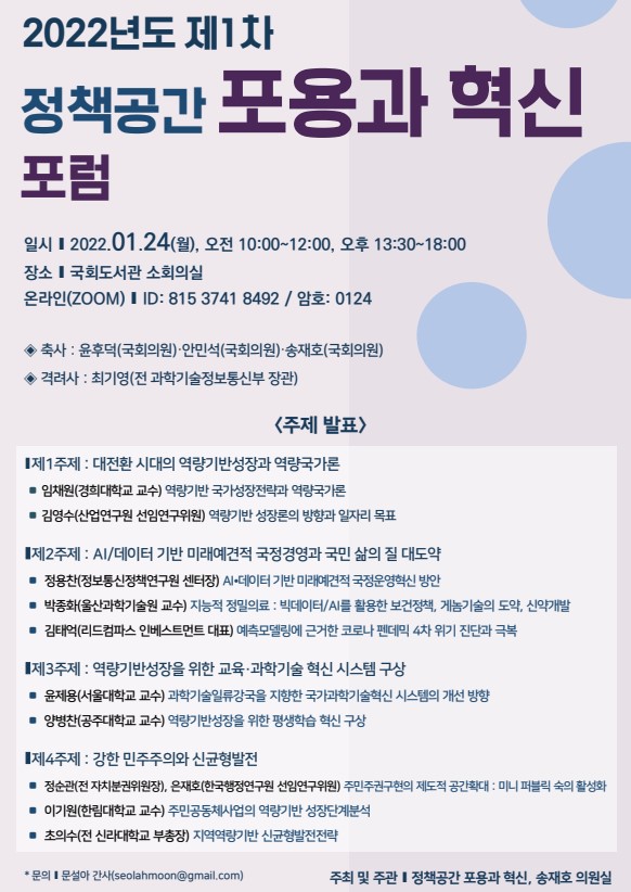 24일 오전 10시부터 오후 6시까지 서울 국회도서관 소회의실에서 ‘대한민국 대도약-새로운 진보의 길을 찾다’라는 주제로 2022년도 제1차 학술포럼이 열린다.