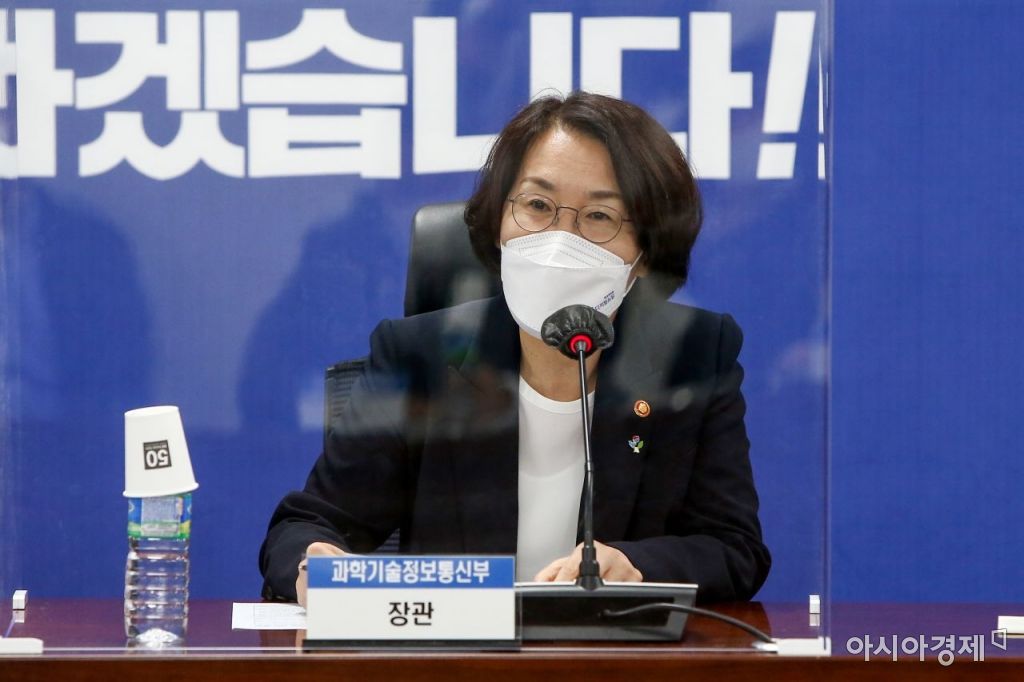 임혜숙 과학기술정보통신부 장관이 9일 국회에서 열린 한·미 정상회담에 따른 과학기술 이행현황과 향후 계획을 논의하고자 열린 당·정·청 협의에 참석, 모두발언을 하고 있다./윤동주 기자 doso7@