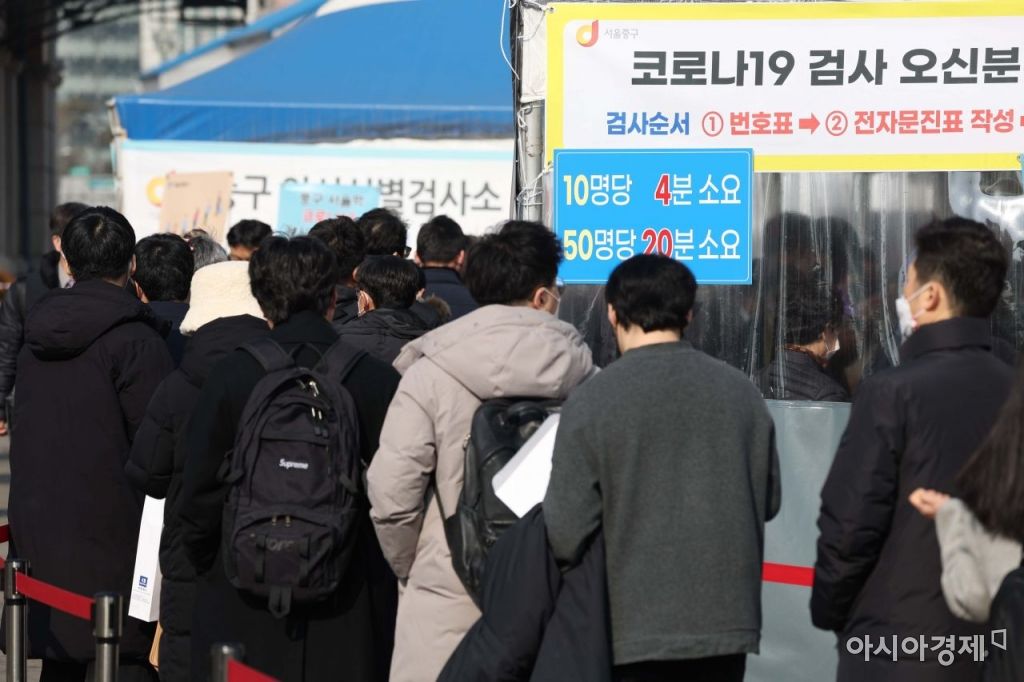 오미크론 확산으로 코로나19 신규 확진자 수가 처음으로 1만명을 넘어선 26일 시민들이 서울역 광장에 마련된 임시 선별검사소를 찾고 있다. /문호남 기자 munonam@